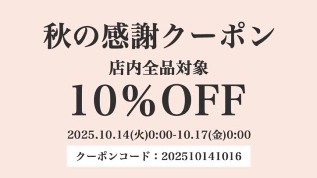 イベント情報 秋の感謝クーポンキャンペーン開催!店内全品10%OFF|欧風雑貨のお店 CASA 秋の感謝クーポン開催中!10/14(火)〜10/17(金)まで店内全品10%OFF。欧風雑貨のお店CASAで秋のインテリアやギフト雑貨をお得にチェック。 2025.10.13 イベント情報